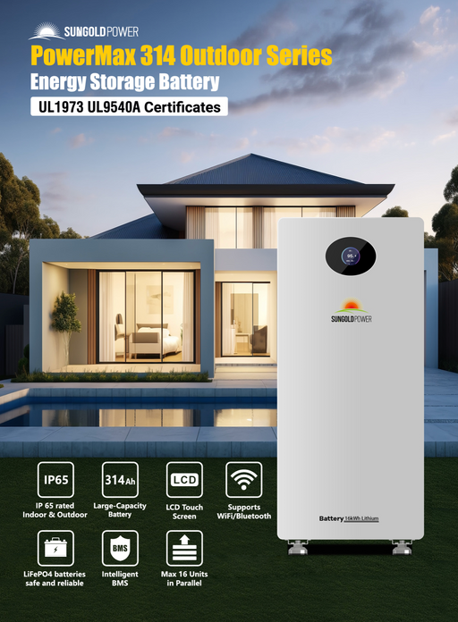 View full detailsSungold Power PowerMax 51.2V 314AH Outdoor Energy Storage Battery UL1973 & UL9540A CEC Listed PowerMax 51.2V 314AH Outdoor Energy Storage Batt...